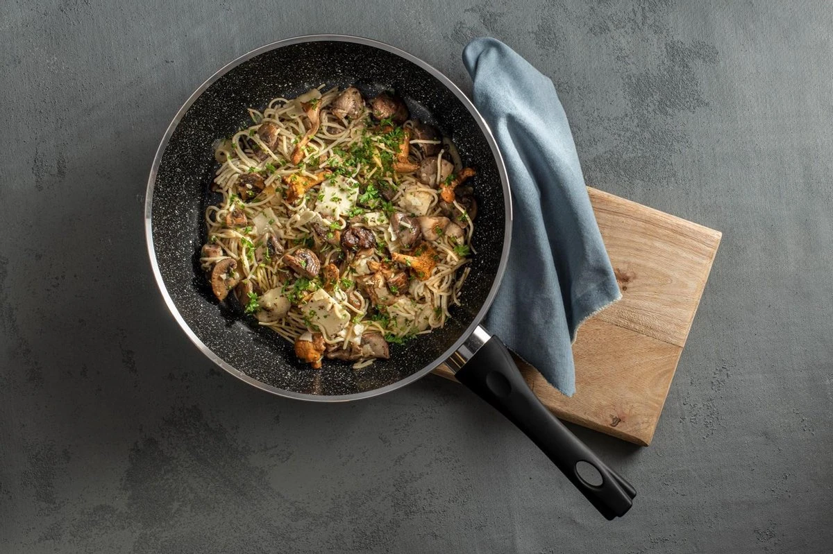 | Verpakkingsinhoud | Garantie: 10 jaar op staal- en fabrieksfouten. Materiaal: Greblon anti aanbaklaag. Kleur: Zwart/wit |