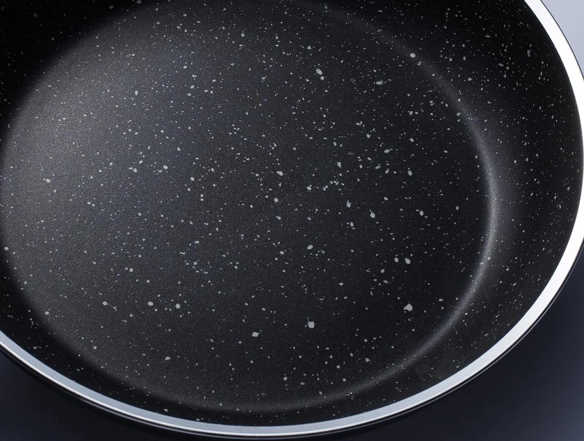 De Stonehenge koekenpannen zijn gemaakt van aluminium en aan de binnenkant voorzien van een non-stick coating in hardsteen decor. Dankzij de non-stick coating blijven etensresten niet plakken en brandt je eten vrijwel nooit aan. Verder gebruik je deze pan op alle hittebronnen.